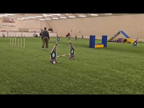 Vår första bana i 2-klass. Timade hindren helt totalt. Då signalen för slutgamblern hördes, var jag på rätt plats. Chansade inte heller här utan tog det säkra före det osäkra och sprang mellan hindren och putkin. Men nästsista ribban föll och därmed fick jag inte slutgamblern . Ingen Luva alltså fastän nästan perfekt bana. Och 6-käppar klarade vi också med första försöket. 36p